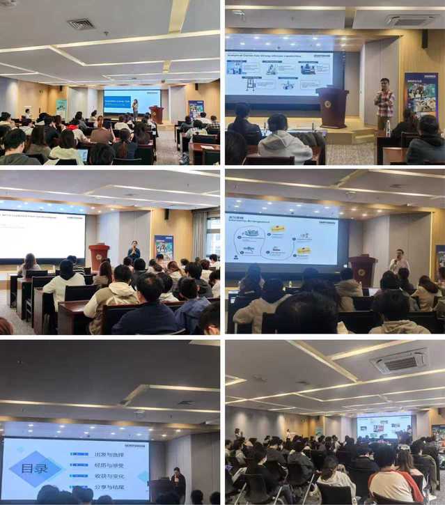 亨斯迈北亚人才招聘经理赵庆云以亨斯迈公司的“雇主价值主张”为切入点,为同学们介绍了亨斯迈的企业概况与人才理念。她围绕公司业务布局、发展历程、产品覆盖领域及上海园区情况展开分享,重点介绍了亨斯迈在行业创新中的地位。她阐述了以“影响、协作、赋能、关爱”为核心的公司价值主张体系,鼓励同学们在职业发展中锚定目标、主动成长。同时,她介绍了公司丰富多样的员工活动与人才培养机制,让同学们对亨斯迈的工作环境与骚母狗有了直观认识。